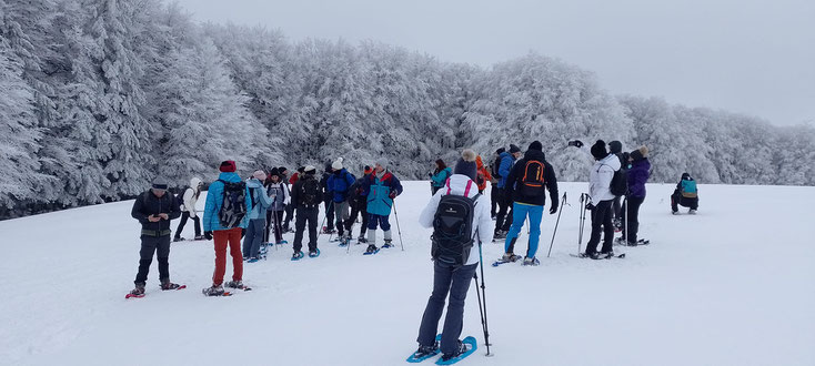 Partenza per una escursione con le ciaspole, osservazione del paesaggio e ricerca tracce di presenza della fauna selvatica.